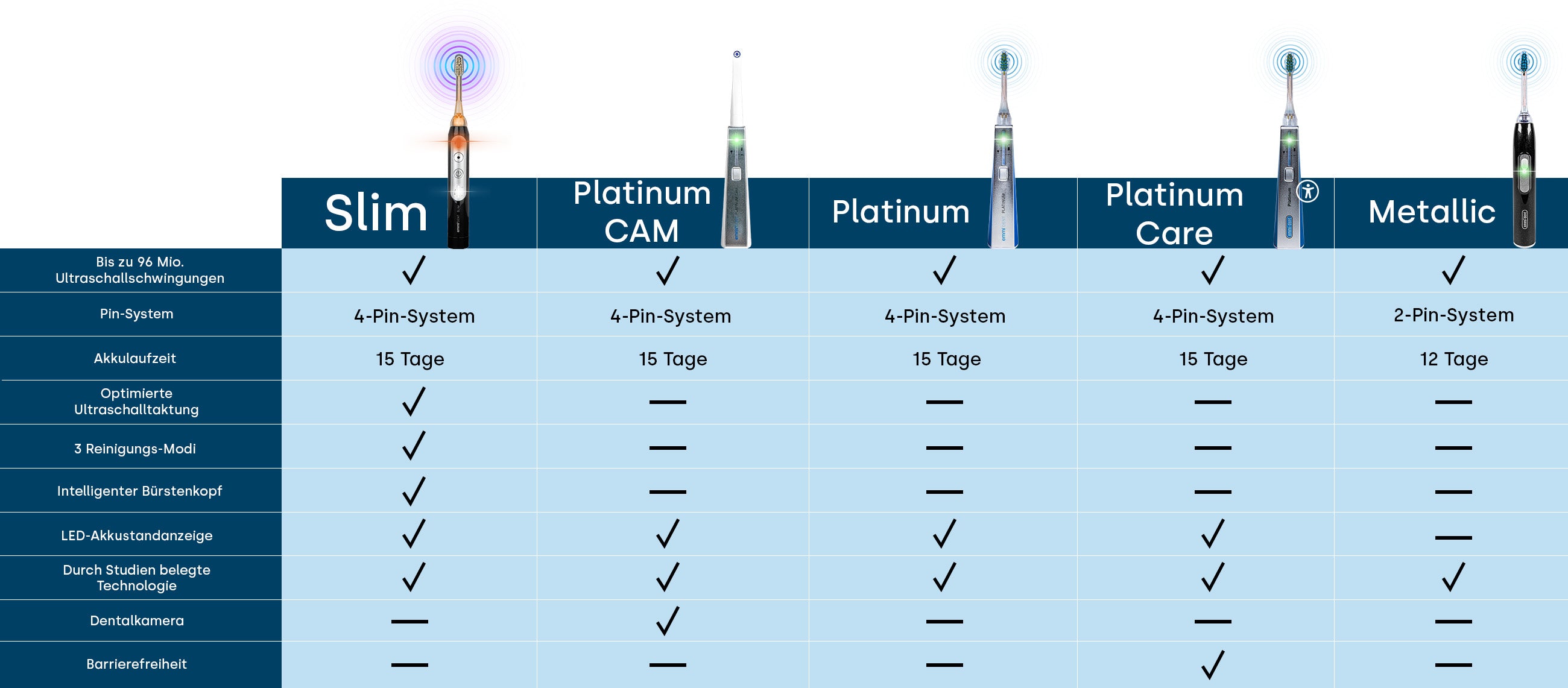 The models differ primarily in their functions, features, and ease of use . While some variants focus on maximum simplicity, others offer additional features such as multiple cleaning modes, an integrated dental camera, or special comfort functions.