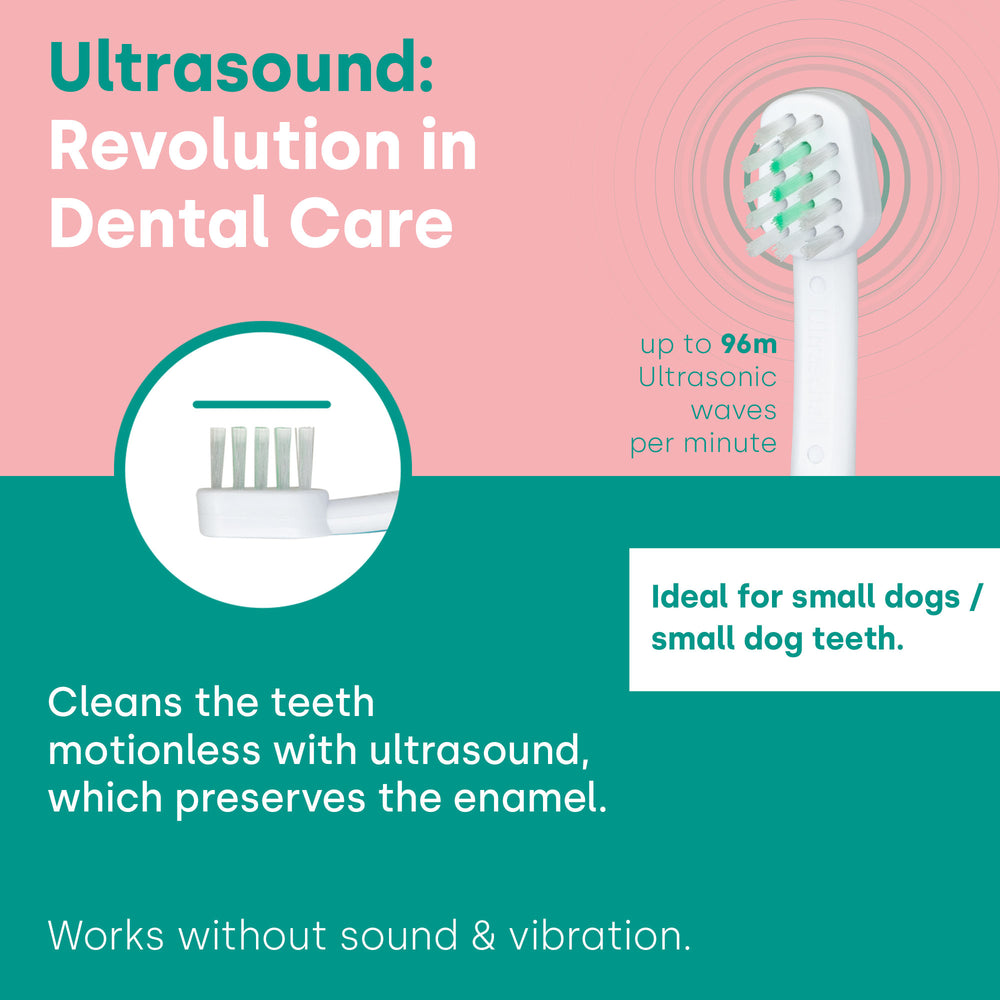 Maintain the health and radiant smile of your beloved pet with the small emmi-pet ultrasonic brush head! Specially developed for animal dental care, this innovative brush head is the ideal solution to thoroughly clean your pet's canines and molars, thus ensuring strong teeth and preventative health.
