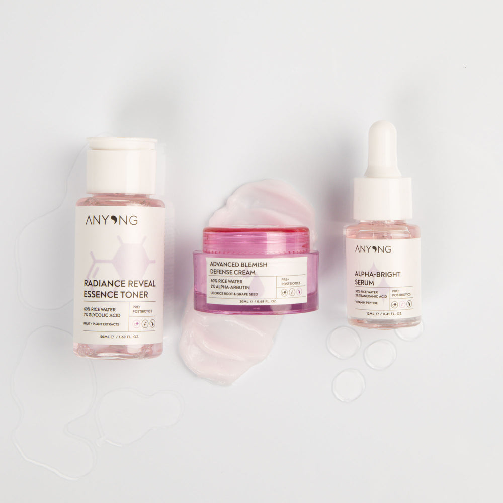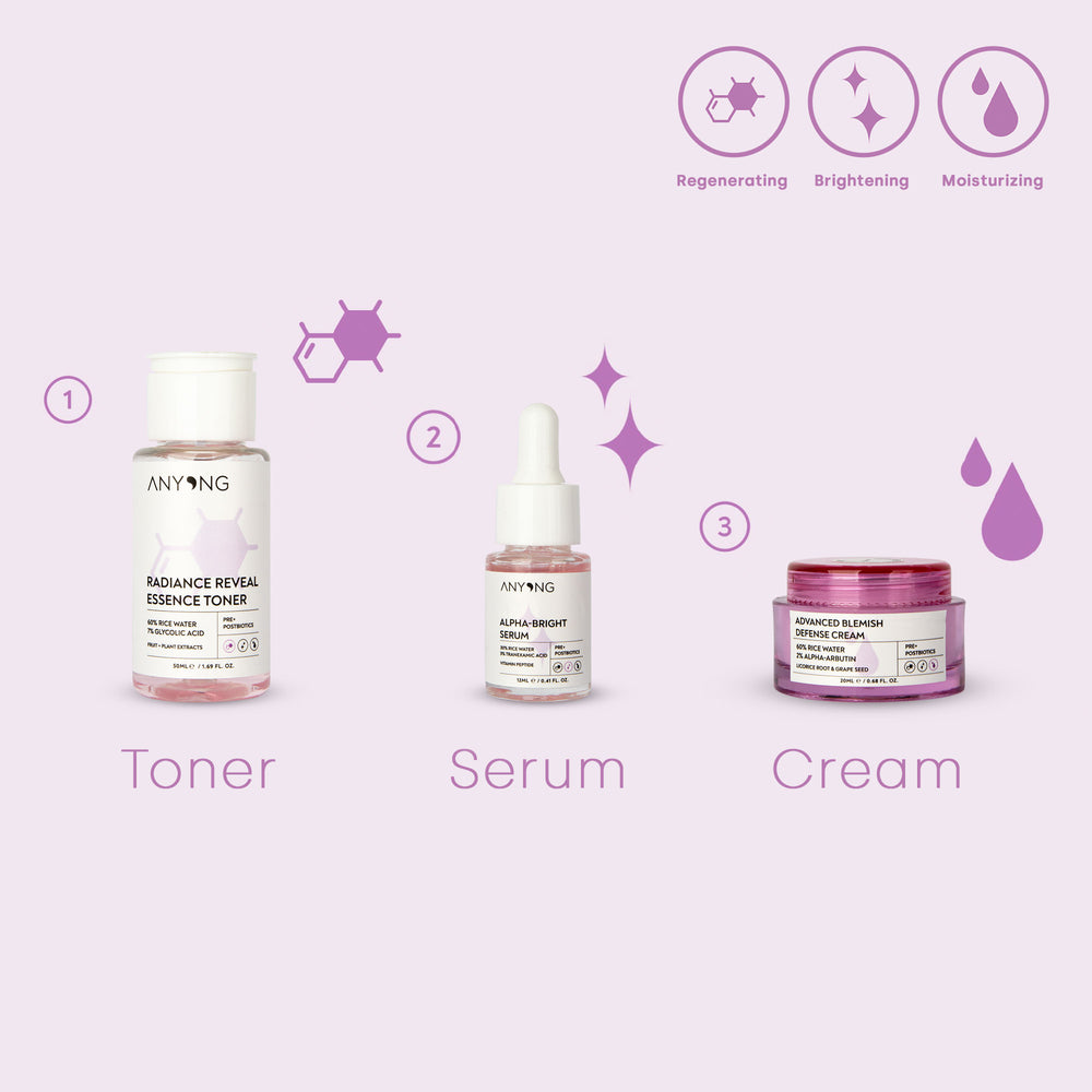 The perfect kit for even skin. The gentle rice water-based toner clears and tightens your pores, making for an ideal prelude. The highlight of the even skin is the smoothing and pore-refining serum. The cuddly finish is the rich Advanced Blemish Defense Cream, an indispensable companion.