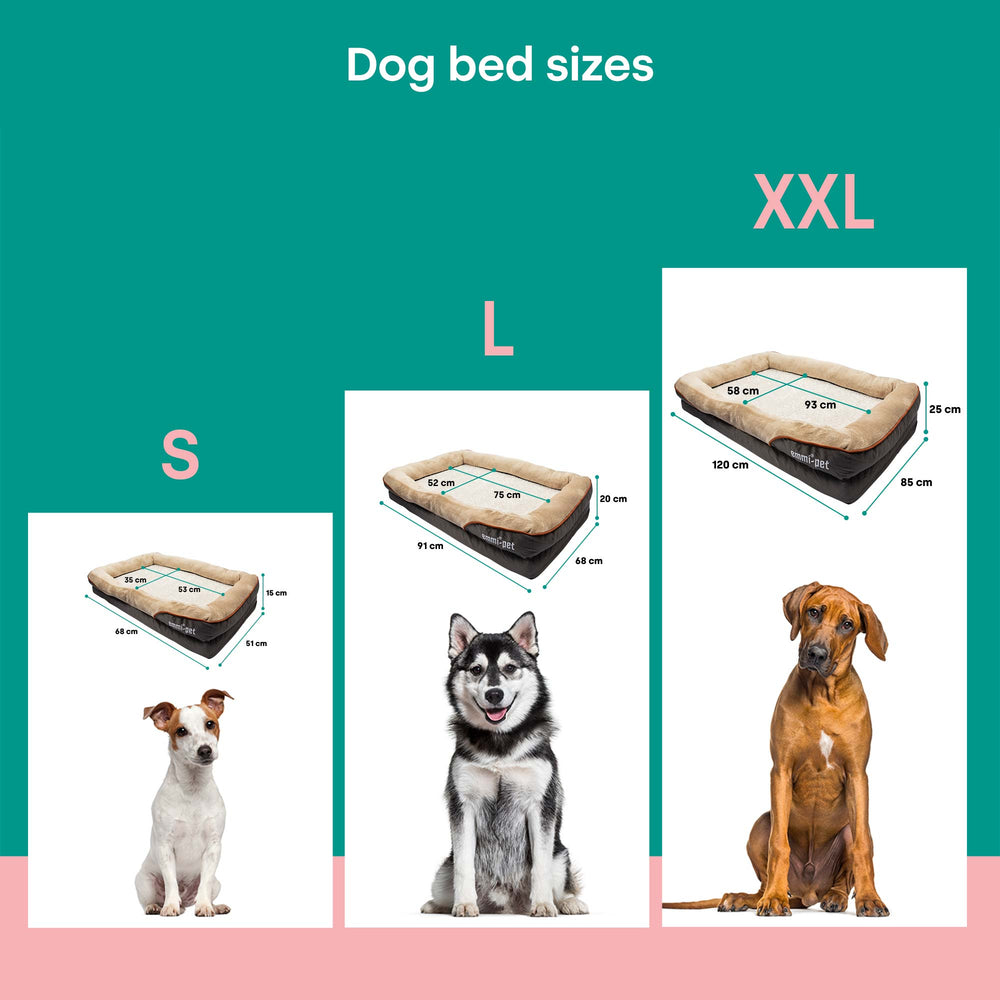 The emmi-pet orthopedic dog bed is available in three sizes, so that both small and large dogs can find the perfect place. The exact dimensions are: