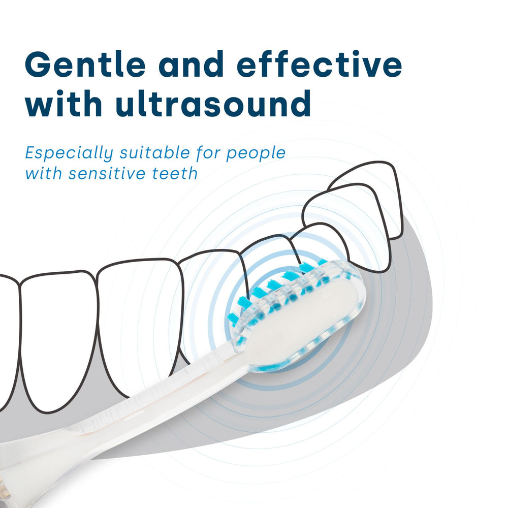 These ultrasonic brush heads should be replaced after 3 months of use at the latest. After this period, the ability of the bristles to transmit 100% of the ultrasound weakens and optimal tooth cleaning and oral hygiene is no longer guaranteed.