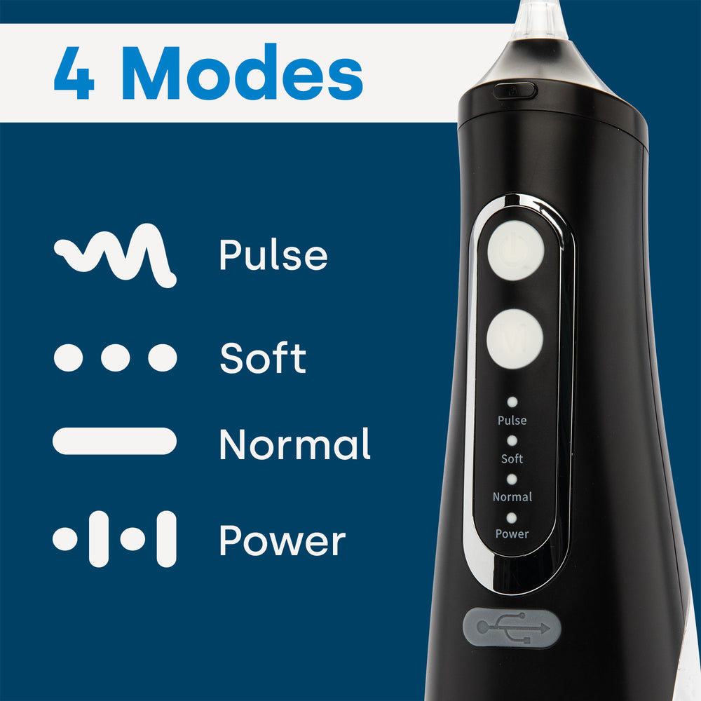 Pulse, gentle, normal and strong - choose the water pressure that suits your teeth and gums. The normal mode provides an efficient water jet for daily rinsing in the morning and evening. The soft mode ensures gentle but effective cleaning.
