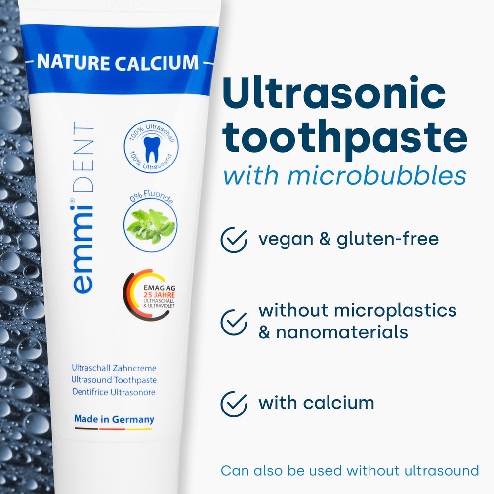 Don't miss the opportunity to try emmi-dent Nature Calcium Ultrasonic Toothpaste and strengthen your teeth naturally. Order today and enjoy the benefits of high-quality dental care without fluoride, but with the power of calcium.