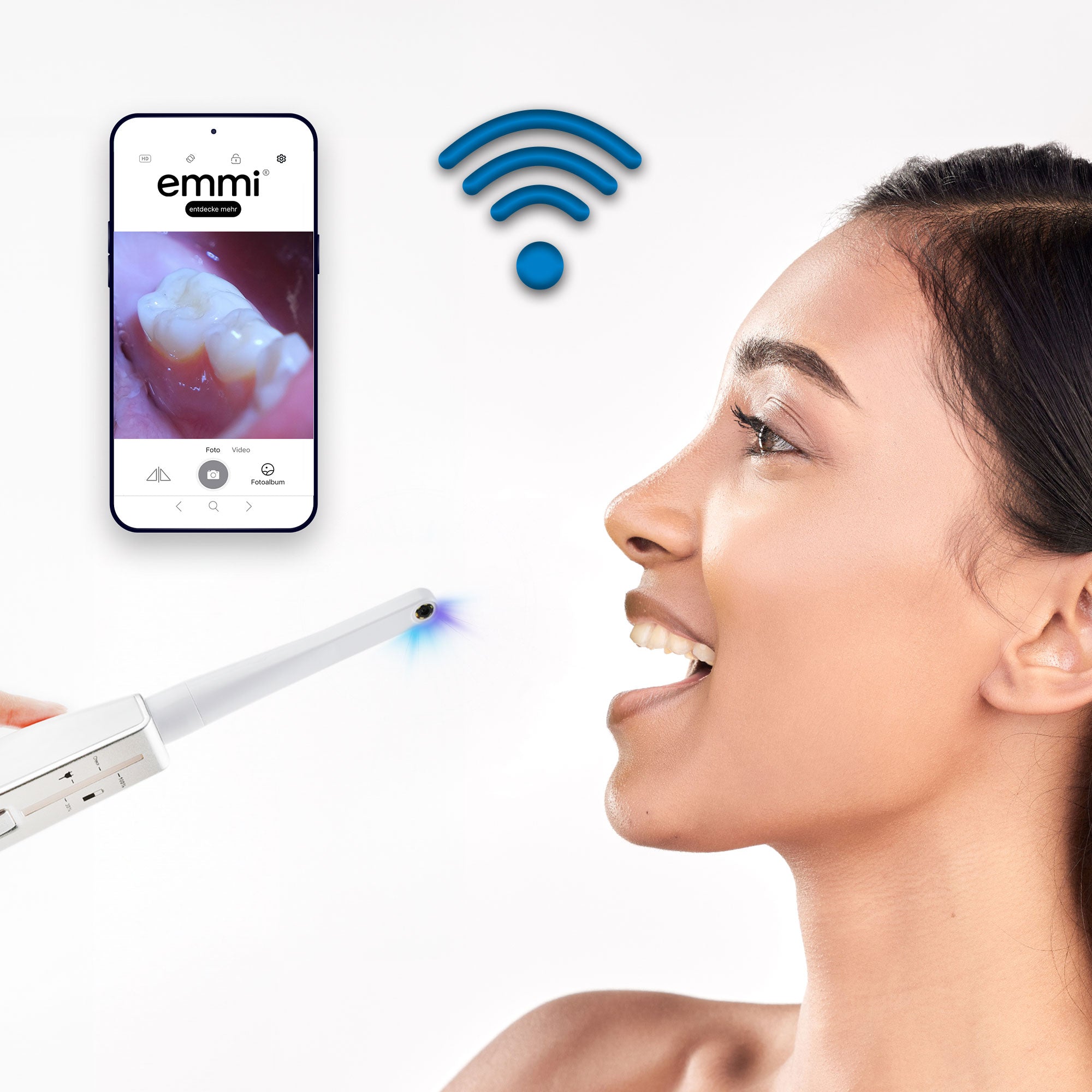 Experience dental care at the highest level: The emmi-dent PlatinumCAM combines the latest ultrasound technology with an integrated dental camera to make hard-to-reach areas in your mouth visible – for even more thorough cleaning and control, conveniently via your smartphone.