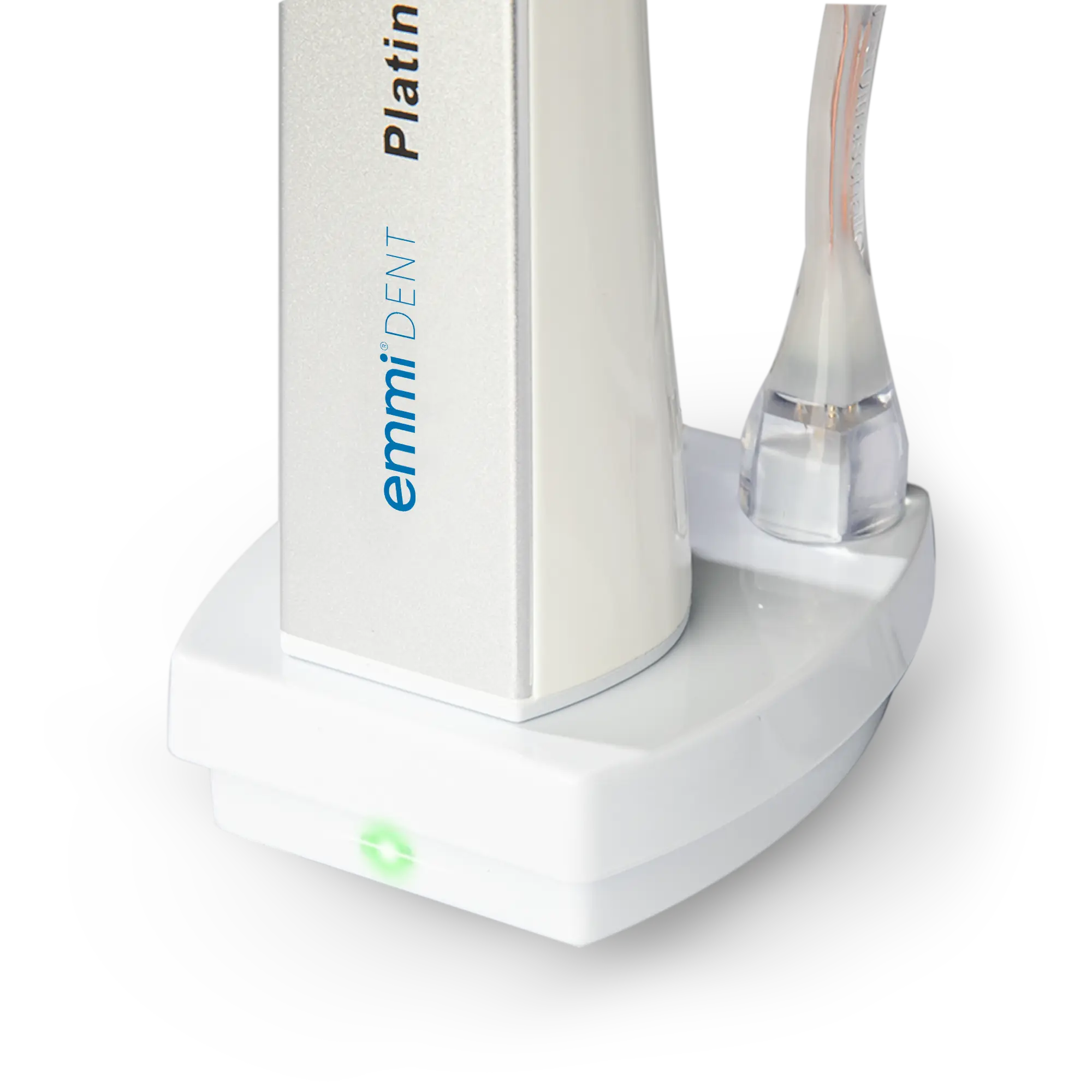 The emmi-dent PlatinumCAM uses proven ultrasonic cleaning, which is characterized by particularly gentle and thorough cleaning. With up to 96 million vibrations per minute, plaque, bacteria and impurities are removed without any scrubbing. This unique technology works completely abrasion-free, which means that your gums and tooth enamel remain protected.