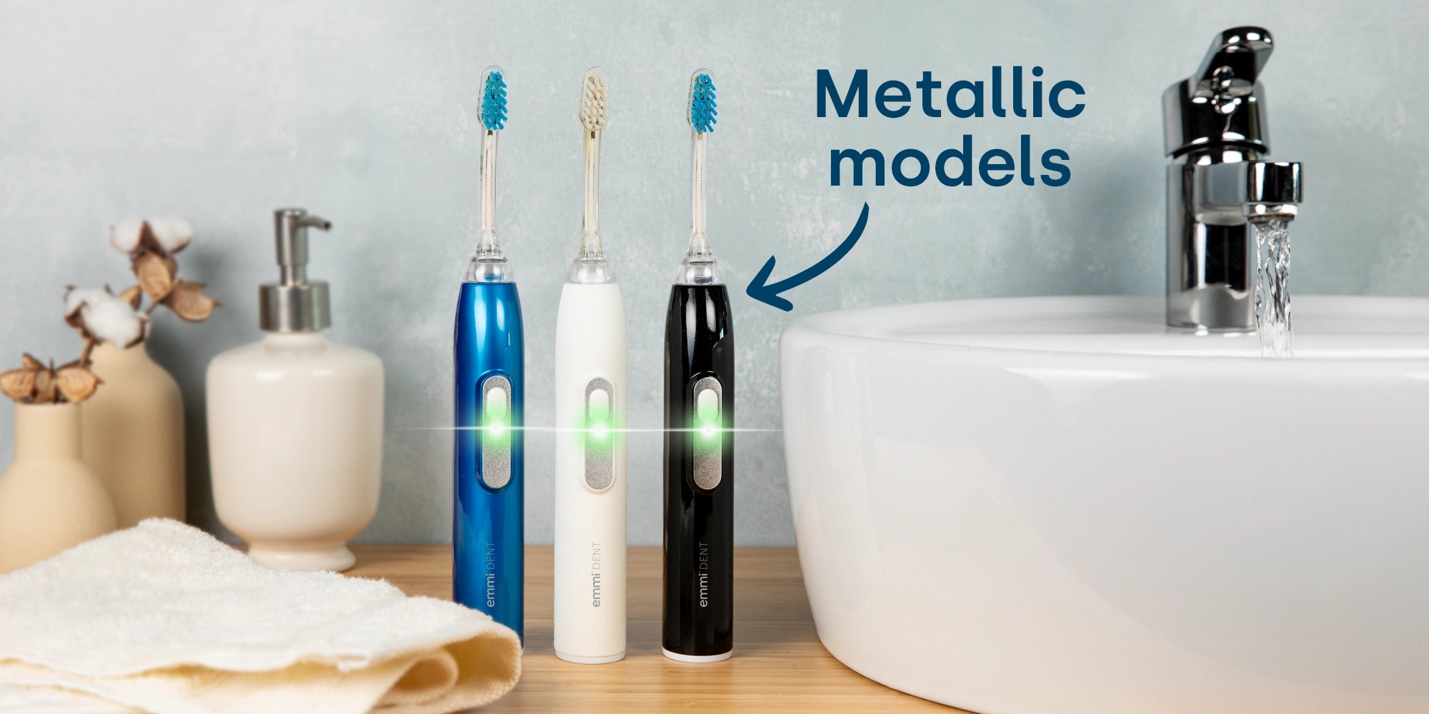 El cepillo de dientes ultrasónico emmi-dent Metallic es el modelo básico de los cepillos de dientes ultrasónicos con sistema de 2 pines. Esto significa que el modelo Metallic genera 2 pulsos ultrasónicos por segundo, lo que lo convierte en un cepillo de dientes ultrasónico de última generación que permite un cuidado dental eficaz y suave. Con el cepillo de dientes ultrasónico emmi-dent Metallic usted invierte en un cuidado dental de alta calidad a un precio justo.