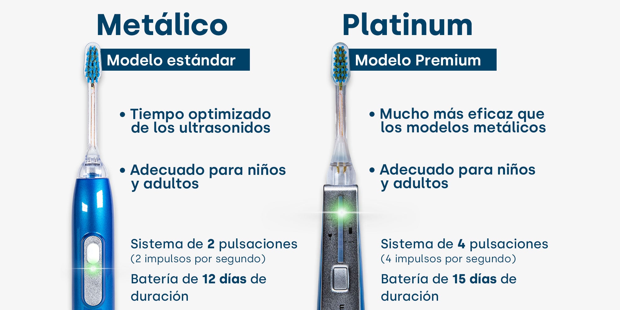Aunque los cepillos de dientes sónicos tienen poder de limpieza, los cepillos de dientes ultrasónicos ofrecen una experiencia de limpieza más intensiva sin dañar el esmalte dental. La frecuencia de las ondas ultrasónicas significa que los cepillos de dientes ultrasónicos no requieren ningún movimiento mecánico como los cepillos de dientes eléctricos convencionales. Esto significa que no existe riesgo de “raspar” accidentalmente el esmalte dental si se usa incorrectamente. Las vibraciones ultrarrápidas pueden penetrar más profundamente en los espacios entre los dientes y a lo largo de la línea de las encías para eliminar de manera más efectiva la biopelícula, la placa y las bacterias.
