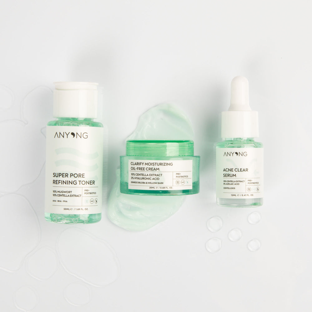 El kit ideal contra las pieles impuras. El tónico refinador de poros elimina el exceso de grasa, lo que lo convierte en un juego previo ideal. Lo más destacado para una piel limpia es el Acne Clear Serum, que contiene extracto de cantella y ácido azelaico. Reacciona específicamente a tus problemas de piel y regenera tu piel. La crema hidratante clarificante y sin aceite proporciona un acabado acogedor.