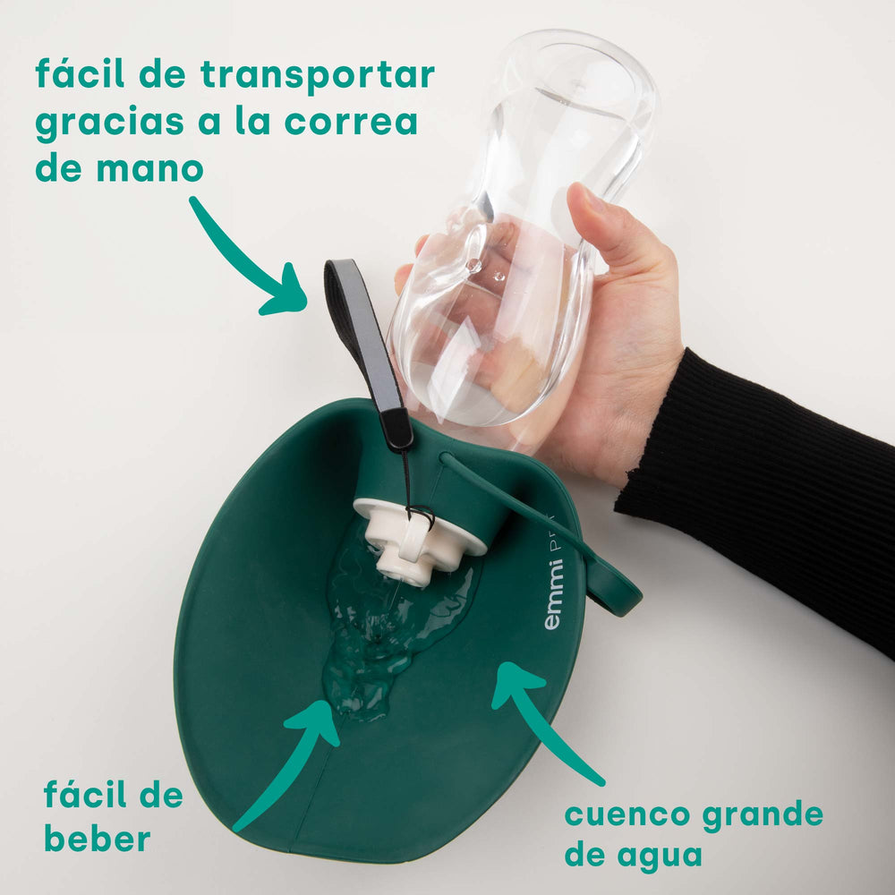 Cuando hacen ejercicio o cuando hace calor, los perros necesitan mucha agua. Cuando viajamos o damos un paseo, a veces no es fácil proporcionar agua fresca a nuestro amigo de cuatro patas. Durante el camino, no es de extrañar que el animal tenga sed y beba de charcos o estanques. Pero el agua puede contener gérmenes y provocar problemas digestivos. Por eso, el bebedero para perros emmi-pet es la solución ideal para llevar de viaje. Con la botella de agua de viaje siempre tendrás suficiente agua a mano.
