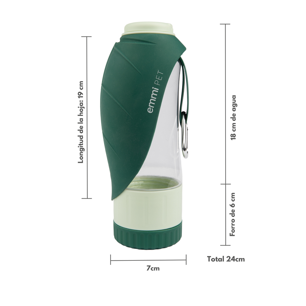 Cuando hacen ejercicio o cuando hace calor, los perros necesitan mucha agua. Cuando viajamos o damos un paseo, a veces no es fácil proporcionar agua fresca a nuestro amigo de cuatro patas. Durante el camino, no es de extrañar que el animal tenga sed y beba de charcos o estanques. Pero el agua puede contener gérmenes y provocar problemas digestivos. Por eso, el bebedero para perros emmi-pet es la solución ideal para llevar de viaje. Con el bebedero para perros 2 en 1 emmi-pet tendrás siempre abundante agua a mano. Con solo doblar la hoja, la botella para beber para mascotas se transforma instantáneamente en un práctico recipiente para agua. Con el diseño de presión especial, puede controlar sin esfuerzo el flujo de agua o dejar que fluya hacia atrás. El contenedor de alimentos que lo acompaña ofrece espacio para golosinas o pequeños refrigerios. Nuestra botella para perros para llevar está equipada con un mosquetón de aluminio fácil de transportar y se puede fijar fácilmente a un bolso o a una bicicleta.