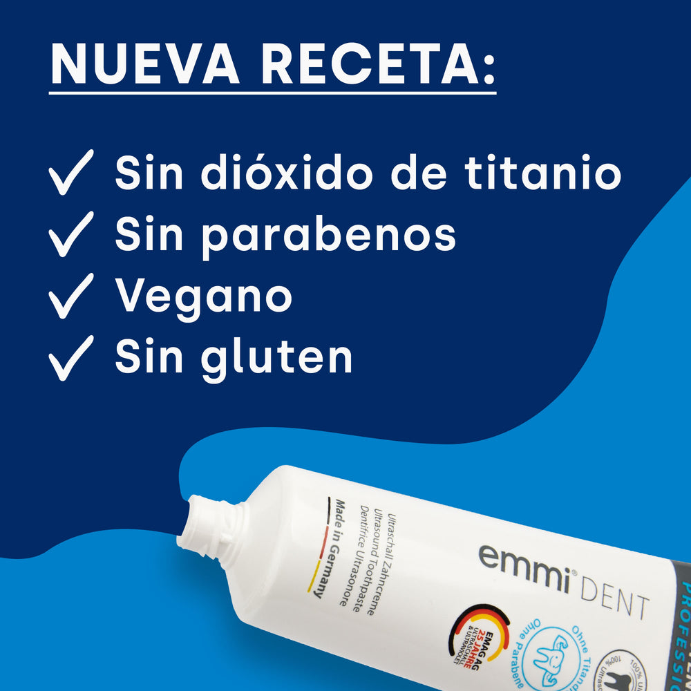 Descubra el mundo mejorado de la pasta de dientes blanqueadora emmi-dent : ¡ahora sin dióxido de titanio ni parabenos! Experimente el mismo poderoso efecto blanqueador, pero con una fórmula aún más natural. La ausencia de dióxido de titanio hace que nuestra pasta de dientes sea suave y delicada, perfecta para conseguir unos dientes blancos y brillantes sin concesiones. ¡Disfruta de lo mejor del cuidado dental natural y una sonrisa radiante!