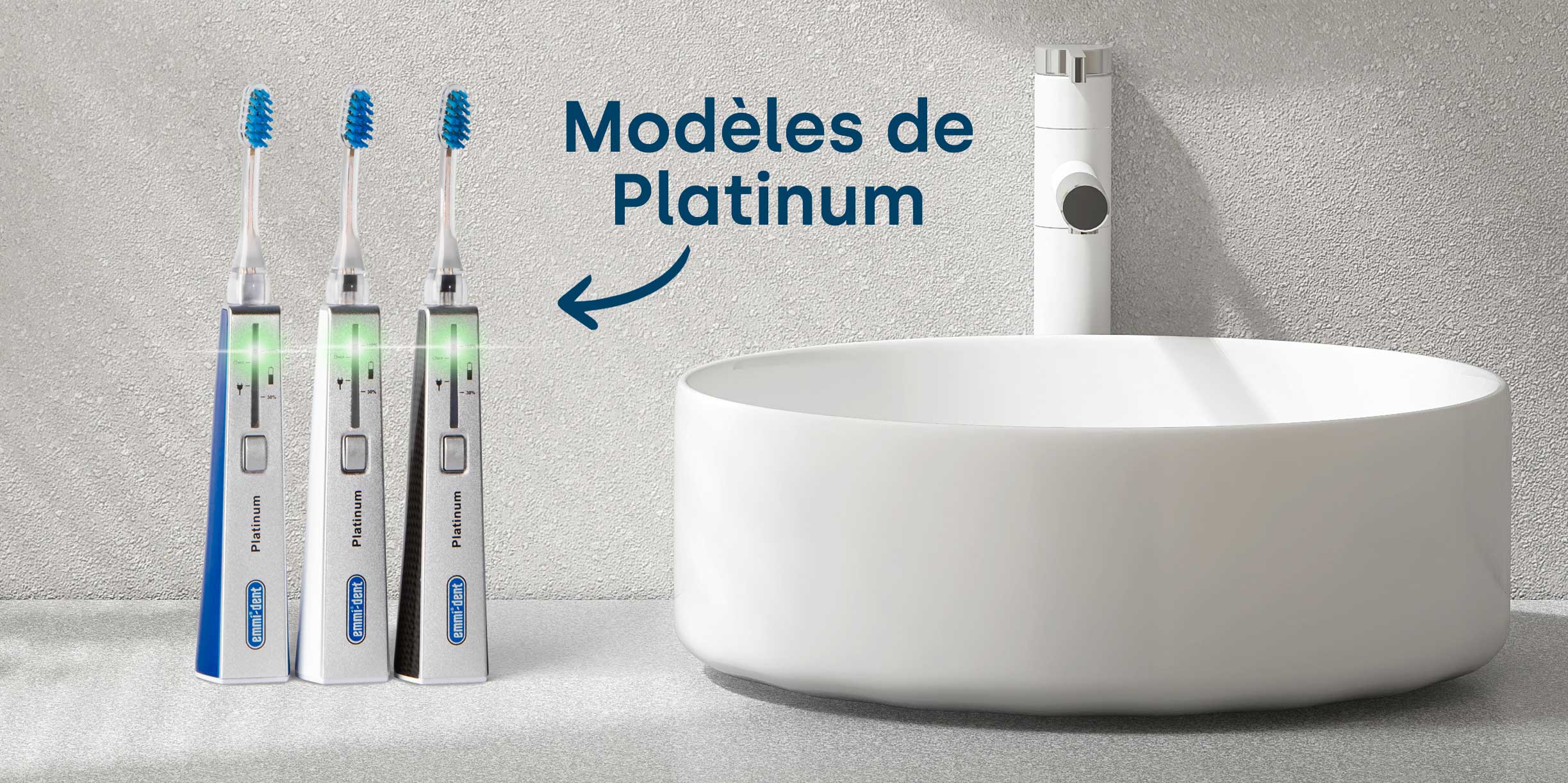 La brosse à dents à ultrasons emmi-dent Platinum Care n'est pas un simple modèle de plus dans notre famille de brosses à dents emmi-dent, mais plutôt le développement efficace de notre brosse à dents à ultrasons « Platinum » ; adapté aux besoins des personnes à mobilité réduite. Notre brosse à dents à ultrasons « Platinum Care » promet un brossage des dents révolutionnaire grâce au label d’accessibilité qui lui a été attribué .