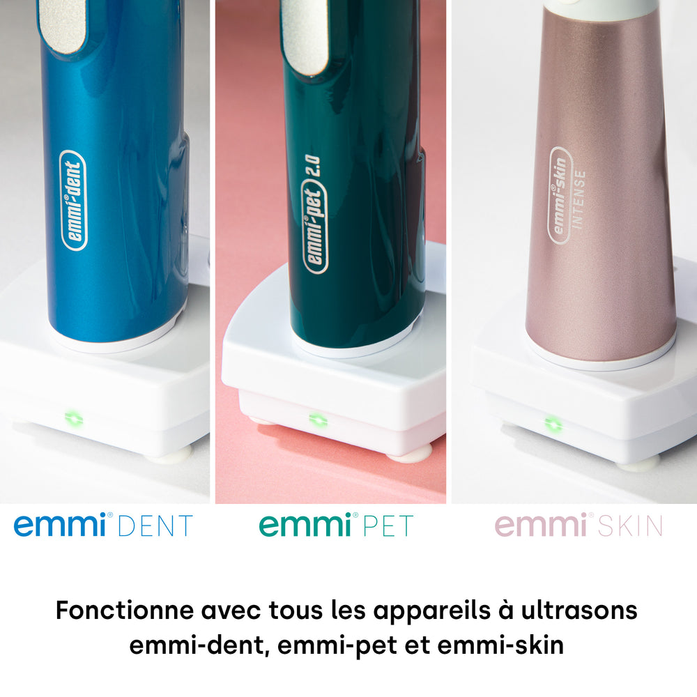 Avec la station de charge emmi 100-240 Ultra, vous pouvez créer un deuxième « pilier » pour charger vos appareils, surtout si plusieurs personnes utilisent le Utilisez les appareils à ultrasons emmi-dent pour le nettoyage des dents et l'hygiène bucco-dentaire avec des ultrasons 100% originaux.