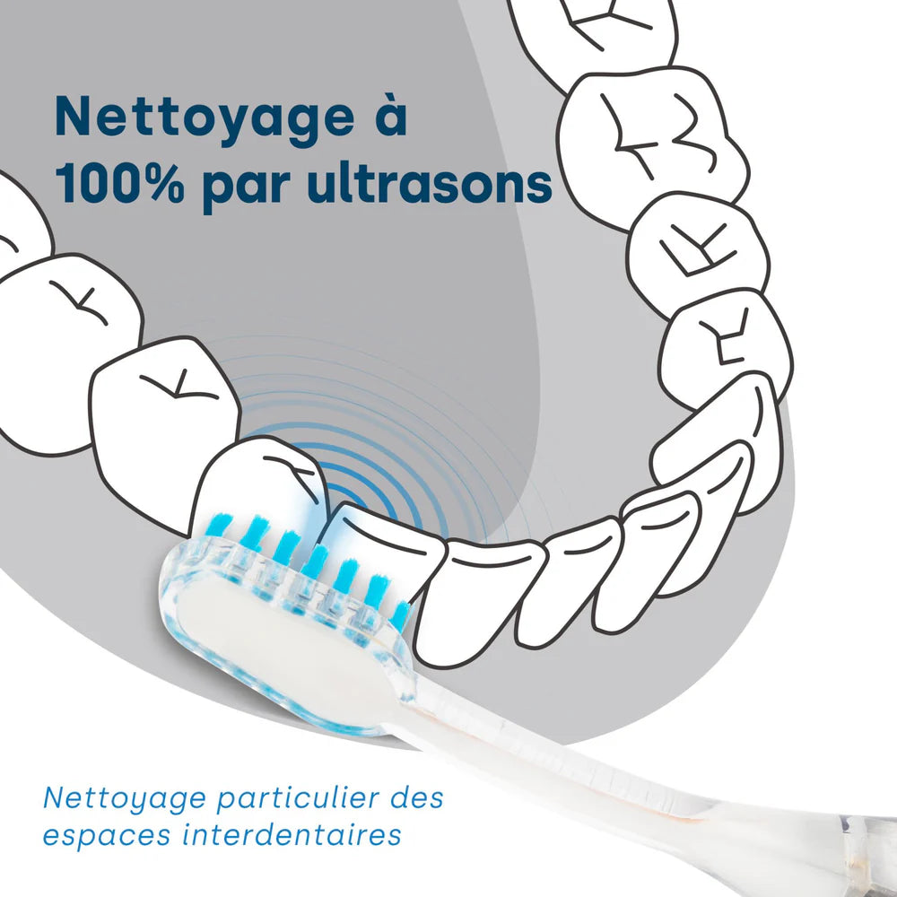 - Nettoyage en profondeur : La technologie à ultrasons élimine la plaque et les bactéries sans brossage mécanique.