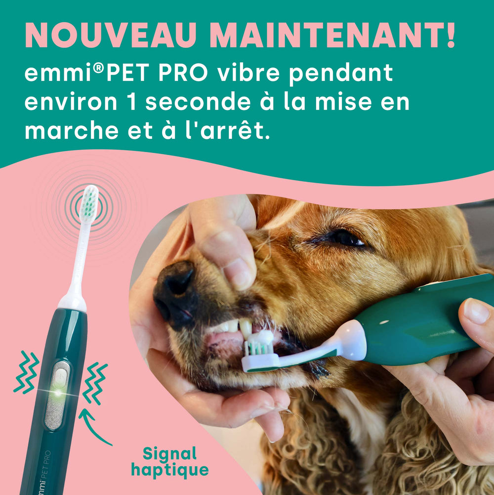 Découvrez la nouvelle génération de brosse à dents à ultrasons avec la nouvelle emmi-pet PRO – désormais dotée de fonctionnalités innovantes qui rendent les soins dentaires de votre animal encore plus faciles et plus efficaces. La technologie optimisée garantit des performances de nettoyage maximales tandis que votre ami à quatre pattes continue de profiter d'une expérience douce et sans stress.