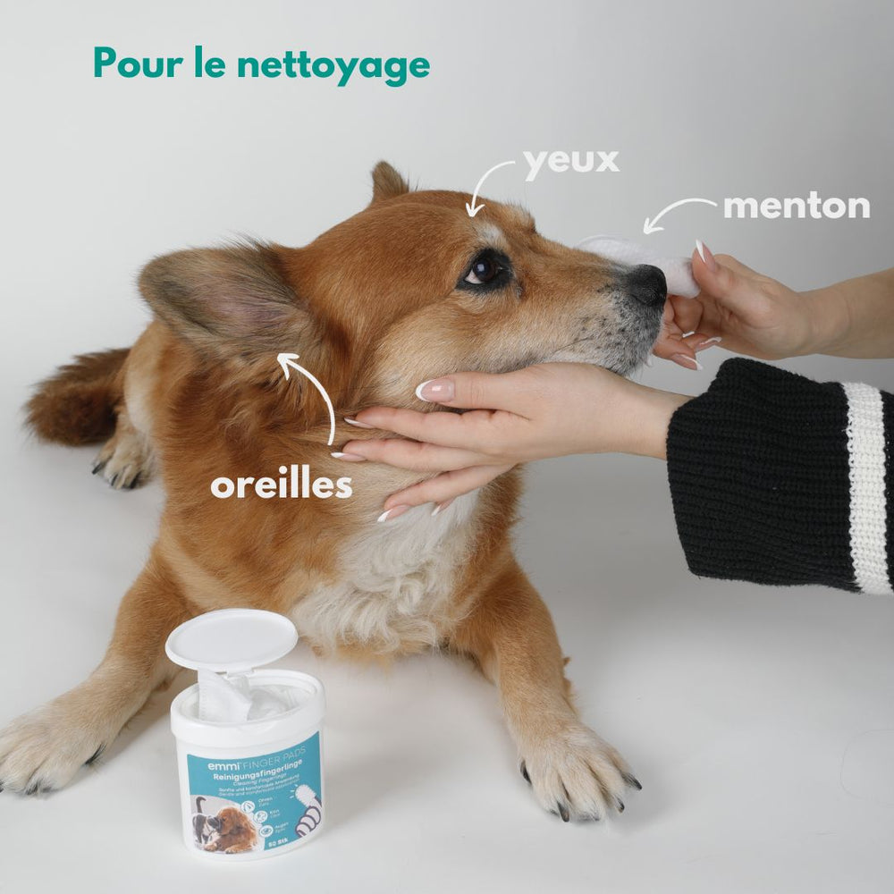 Investissez dans la santé et le bien-être avec nos doigtiers nettoyants emmi-pet et faites du toilettage un rituel agréable pour votre fidèle compagnon.