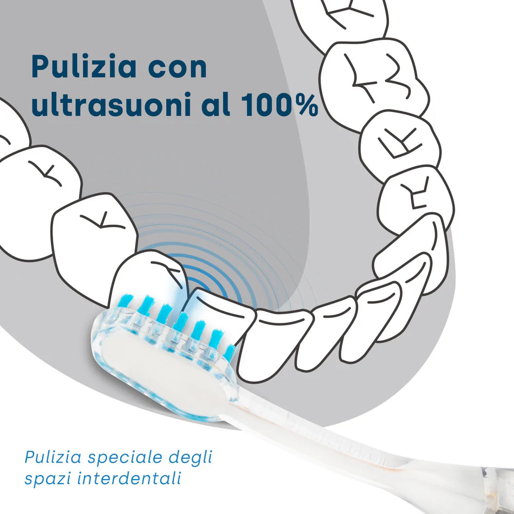 • Pulizia accurata: la tecnologia a ultrasuoni rimuove placca e batteri senza spazzolatura meccanica.