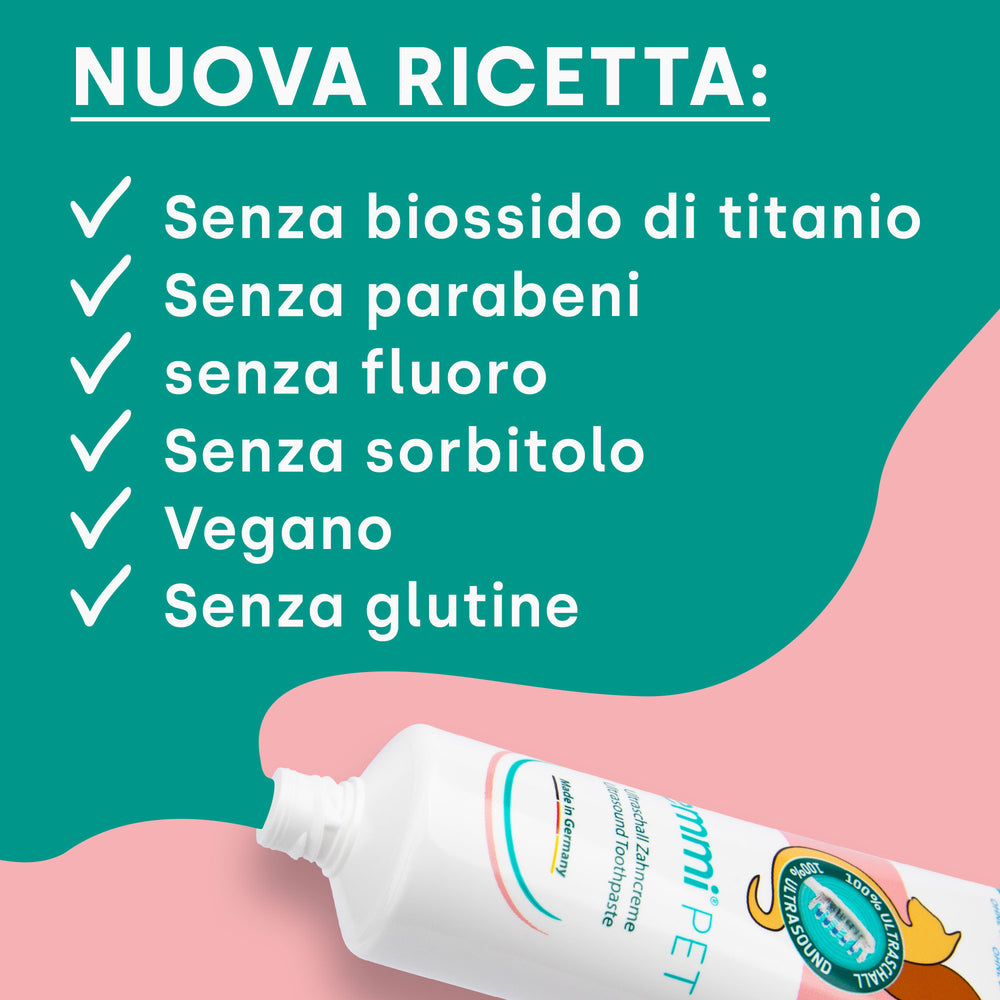 Il dentifricio ultrasonico emmi-pet per animali offre numerosi vantaggi che lo rendono un'ottima scelta per la cura dentale del tuo animale domestico: Pulizia delicata senza abrasione: grazie agli ultrasuoni non è più necessario spazzolare i denti in modo aggressivo. Il valore RDA (abrasione relativa della dentina) è 0, il che significa che il dentifricio è particolarmente delicato sullo smalto e sulle gengive del tuo animale domestico. Rimozione efficace di biofilm e batteri: la tecnologia a microbolle garantisce la rimozione anche della placca e dei batteri più ostinati, senza sollecitare meccanicamente i denti. Prevenzione delle malattie dei denti e delle gengive: una pulizia delicata ma accurata preserva le funzioni protettive naturali dei denti, riducendo significativamente il rischio di malattie dei denti e delle gengive. Combattere l'alito cattivo: l'uso regolare del dentifricio Emmi-Pet aiuta a prevenire l'alito cattivo riducendo il numero di batteri che causano cattivi odori.