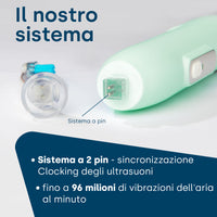 • Con ultrasuoni al 100%, senza movimento meccanico.