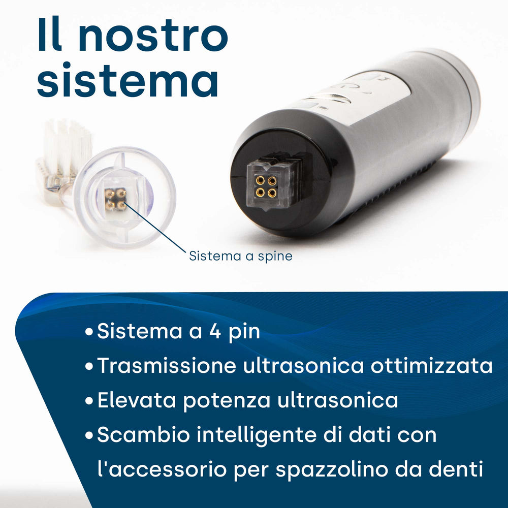 Dal 2013 gli spazzolini che funzionano con gli ultrasuoni stanno rivoluzionando il modo di lavarsi i denti. Il vantaggio decisivo rispetto agli spazzolini manuali classici o a quelli elettrici è che gli spazzolini ad ultrasuoni funzionano quasi senza contatto e senza movimenti meccanici. Ciò rende la pulizia particolarmente delicata e tuttavia affidabile e accurata.