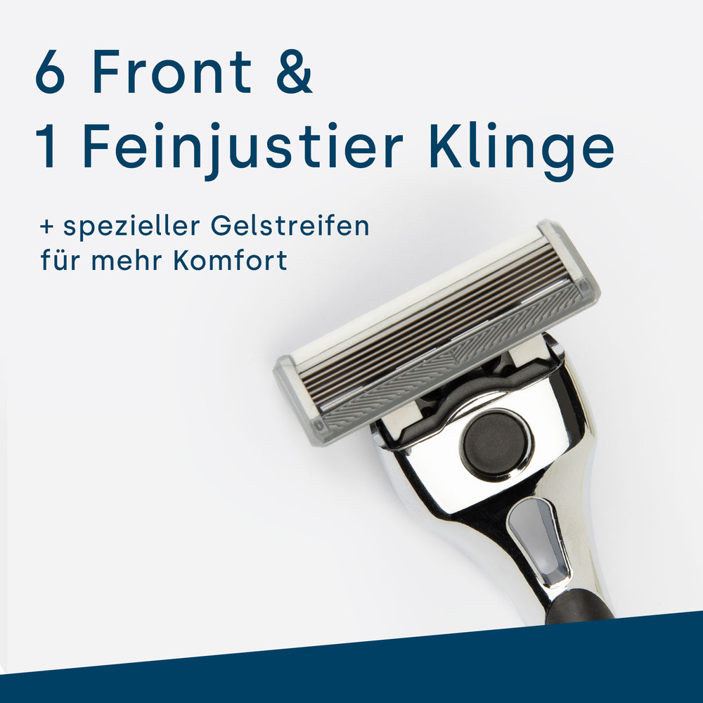 Unsere sieben ultra-scharfen Klingen gleiten mühelos durch selbst das widerspenstigste Haar, um eine gründliche und schonende Rasur zu gewährleisten. Jede Klinge ist präzisionsgeschliffen, um Hautirritationen zu minimieren und ein angenehmes Rasiererlebnis zu bieten, das Sie lieben werden.