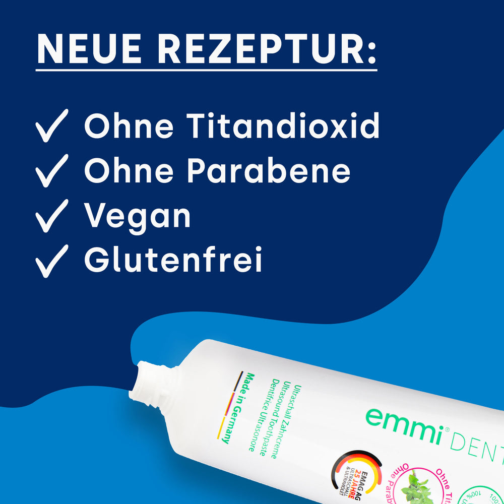 Die emmi-dent Fresh Zahnpasta ist ideal für empfindliche Zähne. Sie reinigt sanft, stärkt das Zahnfleisch und bekämpft Plaque und Zahnstein. Mit natürlichen Inhaltsstoffen sorgt sie für frischen Atem und ein sauberes Gefühl durch die revolutionäre Ultraschalltechnologie.