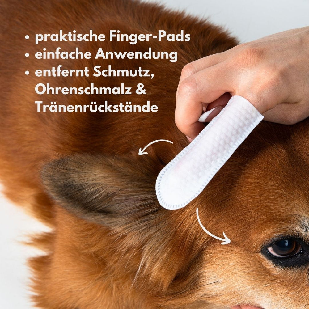 Die Reinigung der Augen ist ebenfalls eine wichtige Pflegemaßnahme, um Augenprobleme zu verhindern. Dazu wischst du täglich mit den Fingerlingen über die Augenpartie, um Tränenrückstände und Verunreinigungen zu entfernen. Die Fingerlinge sind einfach in der Anwendung und können nach Gebrauch einfach entsorgt werden.