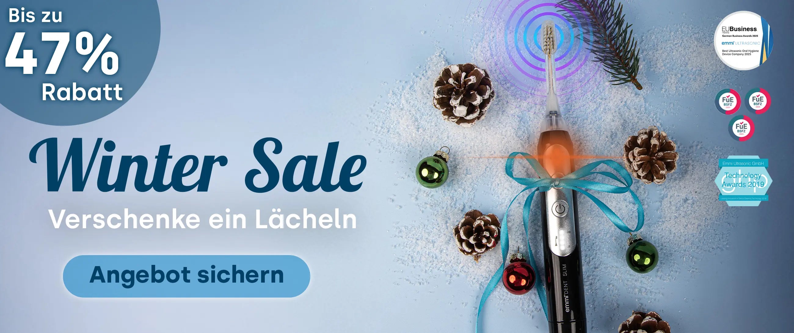 Mit der emmi-dent Ultraschallzahnbürste sagen Sie Parodontitis, Gingivitis und Aphten den Kampf an. Die Wirksamkeit wurde durch verschiedene Studien nachgewiesen. Mit zweimal täglich Zähneputzen reduzieren Sie die Bakterienzahl im Mundraum deutlich. Ganz nebenbei ist damit auch für einen langanhaltend frischen Atem gesorgt. Die einfache Anwendung der Ultraschallzahnbürste ist zudem besonders gut für Kinder und Menschen mit motorischen Herausforderungen geeignet. Auch Träger von Zahnspangen, Brücken, Implantaten oder Kronen können endlich aufatmen, denn das Ultraschallverfahren reinigt zuverlässig bis in die kleinsten Zwischenräume. Zusätzlich bringt Ihnen diese Zahnbürste, in Verbindung mit einer speziellen Ultraschall Zahnpasta, Stück für Stück die natürliche Farbe Ihrer Zähne zurück. Kleinste Verfärbungen, die durch Kaffee, Tee, Wein oder Nikotin einstanden sind, werden entfernt und Sie bekommen Ihr weißes Lächeln wieder.